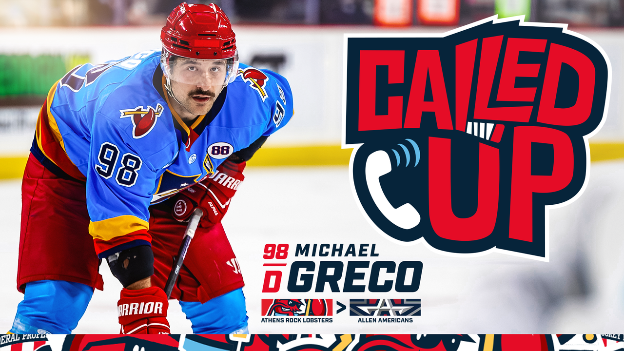 Athens, GA (January 9th, 2025) — The Athens Rock Lobsters proudly announce that defenseman #98 Michael Greco has been called up to the Allen Americans of the ECHL. Greco will report immediately and join the Americans’ roster as he takes the next step in his professional hockey career.