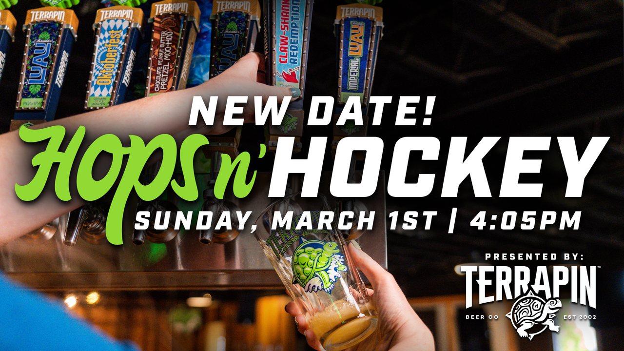 After last week’s winter weather forced a postponement, we’re excited to officially announce the new date for Hops N Hockey presented by Terrapin now set for Sunday, March 1st, 2026 at 4:05 PM.