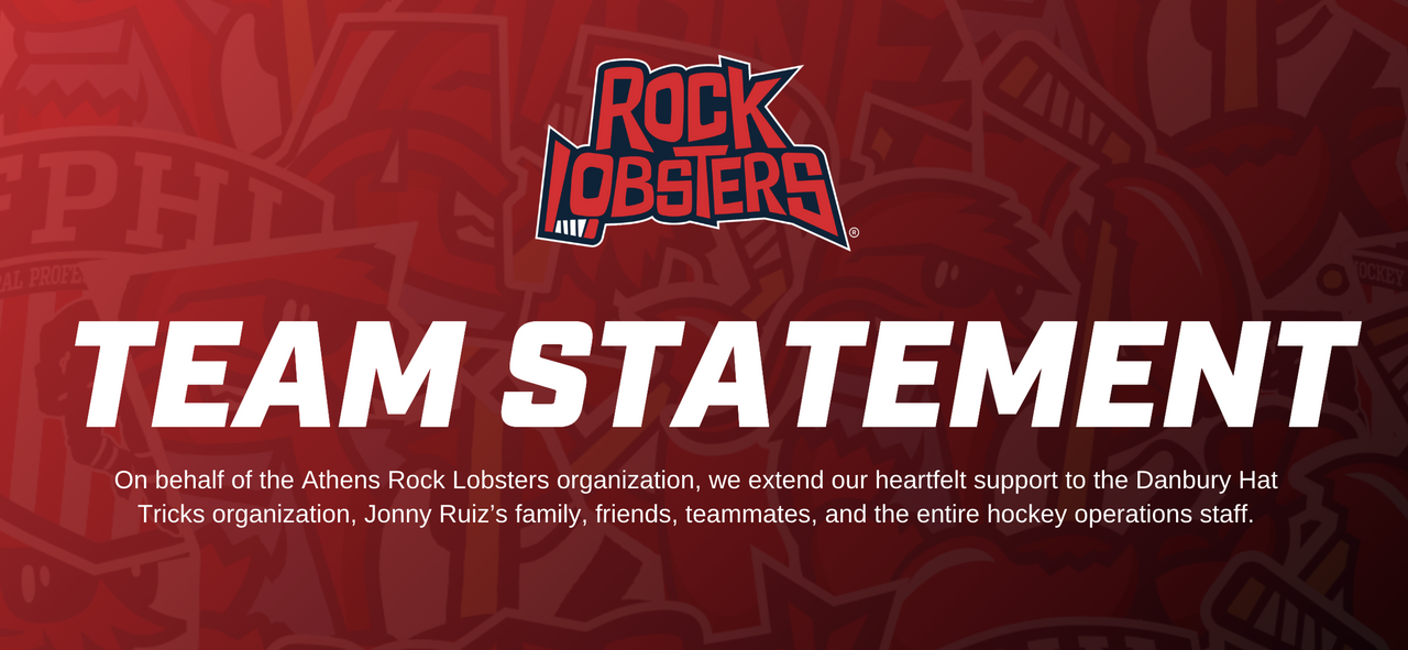 On behalf of the Athens Rock Lobsters organization, we extend our heartfelt support to the Danbury Hat Tricks organization, Jonny’s family, friends, teammates, and the entire hockey operations staff.
