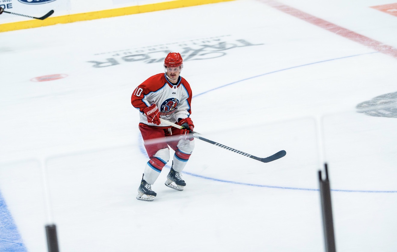 Watching Athens celebrate its Teddy Bear Toss Night 24 hours ago, Charlie Bedard got Pee Dee’s festivities started with his first FPHL goal since Dec. 27, 2024 six minutes in on the power play.